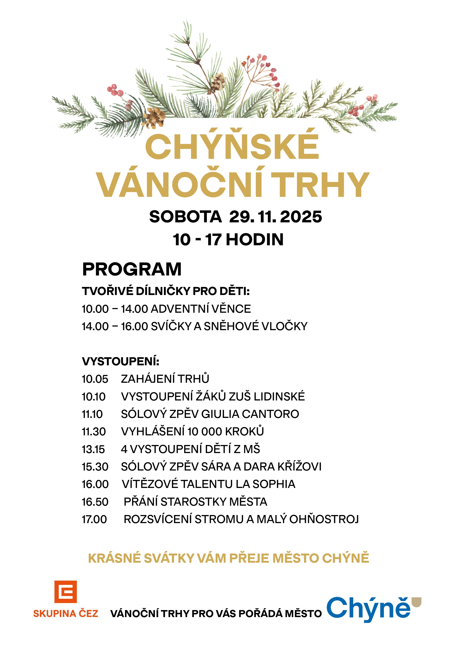 zveme vás na tradiční vánoční trhy, které se letos konají 29. 11. 2025 od 10:00 hodin ve dvoře u Procházků.