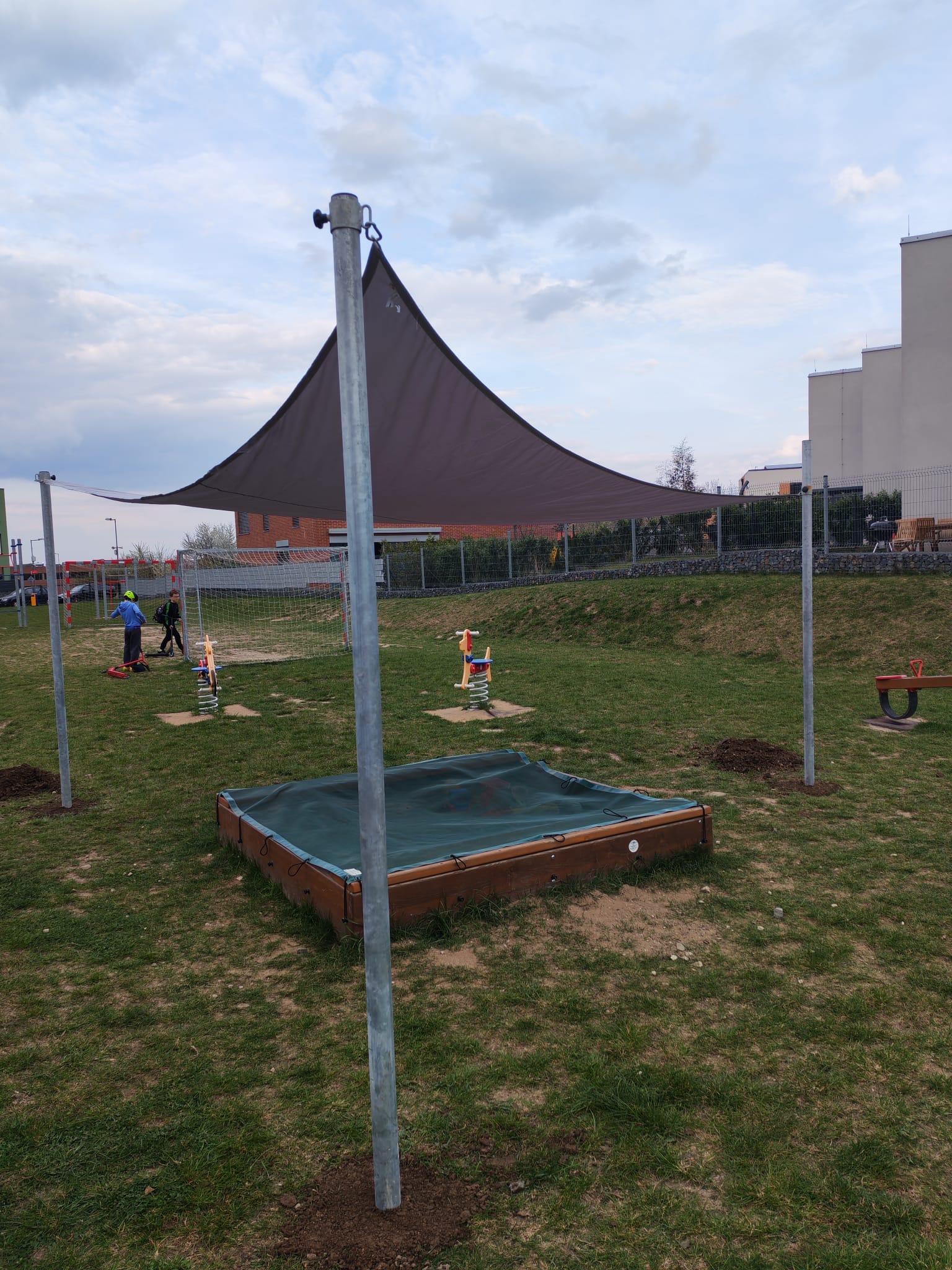 na hřišti v Turonské ulici, proběhla betonáž sloupků pro zastínění pískoviště.